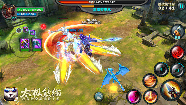 《太极熊猫》是由蜗牛数字开发的首款ARPG手机游戏,拥有美式漫画与东方水墨元素结合的独特风格,采用3D端游引擎和真人捕捉技术打造,首创浮空连招格斗,带来全新畅爽打击体验。同时,游戏中还将MMO化和重度交互玩法移植到手机上,多人实时对战、实时组队副本、多人BOSS战、天梯巅峰对决、巅峰联赛、25VS25野外团战、战骑系统、公会跨服争霸、武神转生、职业切换、3VS3战队竞技、动作推塔、师徒系统、武神羁绊等诸多玩法都在《太极熊猫》中得以实现,还突破性地加入角色转生,七大职业全面觉醒,萌宠法宝强势助战,更有战队结拜、装备分解、武神领悟、炫酷时装等全新内容,碎屏级掌上团战一触即发,享受全新畅爽体验!