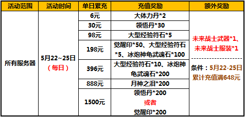 1、活动期间,单日累计充值满对应金额即可领取对应奖励,每档奖励每天均可参与1次;