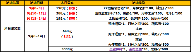 1、活动期间,多日累计充值达到对应金额即可领取对应奖励;