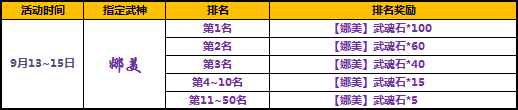 活动期间开启限时指定武魂活动,您在“精彩活动”对应活动界面进行宝藏抽取,即可有几率获得指定武神魂,积分排名1-50名的玩家将有额外排名豪礼相赠。