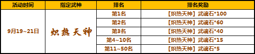 活动期间开启限时指定武魂活动,您在“精彩活动”对应活动界面进行宝藏抽取,即可有几率获得指定武神魂,积分排名1-50名的玩家将有额外排名豪礼相赠。
