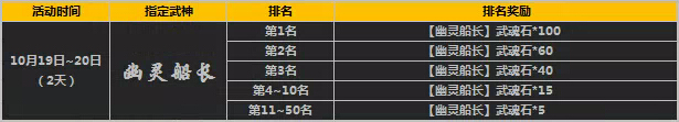 活动期间开启限时指定武魂活动,您在“精彩活动”对应活动界面进行宝藏抽取,即可有几率获得指定武神魂,积分排名1-50名的玩家将有额外排名豪礼相赠。