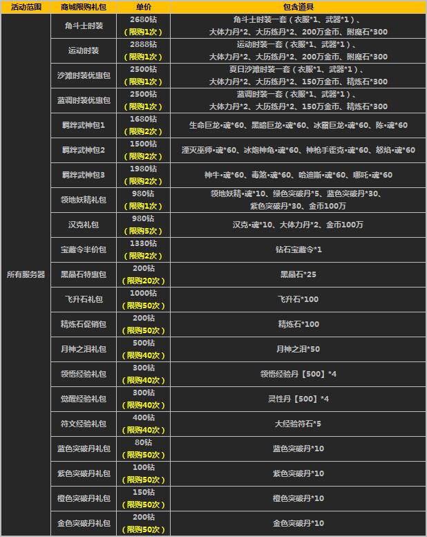 1、活动时间,礼包将在游戏商城的道具柜面出售,请注意活动范围及限购次数;