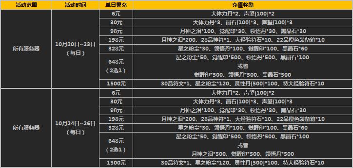 举例:活动期间单日累计充值满30元,即可领取6元档次充值奖励和30元档次充值奖励。