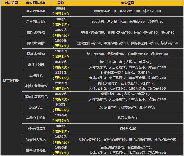 1、活动时间,礼包将在游戏商城的道具柜面出售,请注意活动范围及限购次数;