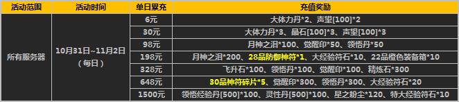 举例:活动期间单日累计充值满30元,即可领取6元档次充值奖励和30元档次充值奖励。