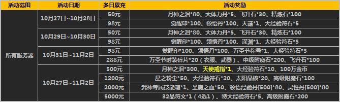 1、活动期间,多日累计充值达到对应金额即可领取对应奖励;