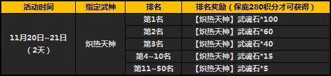1、活动期间,玩家在“精彩活动”按钮“限时武神”界面进行宝藏抽取,有几率获得指定武神武魂石;