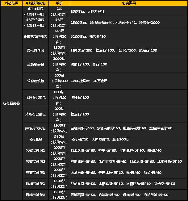 1、活动时间,礼包将在游戏商城的道具柜面出售,请注意活动范围及限购次数;