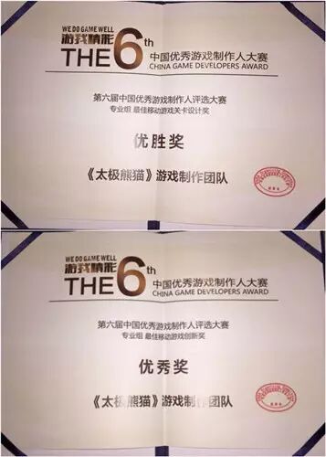 继荣获2014金翎奖“玩家最期待的移动网络游戏”、第六届CGDA“最佳移动游戏创新奖”、第六届“最佳移动游戏关卡设计奖”后,春节期间,《太极熊猫》再传捷报,荣获华为应用市场“2014最受欢迎游戏”奖项。在2014年度,《太极熊猫》凭借不俗的游戏素质和超高的人气斩获颇丰,受到了业内和玩家的广泛好评,我们一起来看看截至目前所获的奖项吧~