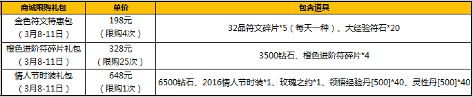 1、活动时间,礼包将在游戏商城的道具柜面出售,请注意活动范围及限购次数;