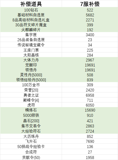 2、远征7服跨服&合服总补偿内容=远征6服补偿内容+“条目1”补偿内容;