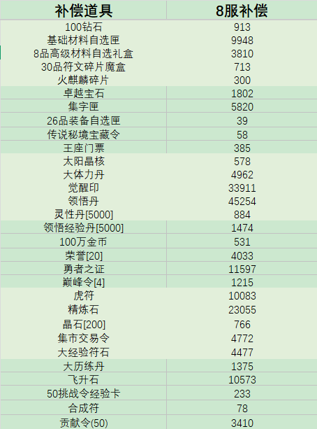 2、远征8服跨服总补偿内容=远征7服补偿内容+“条目1”补偿内容;